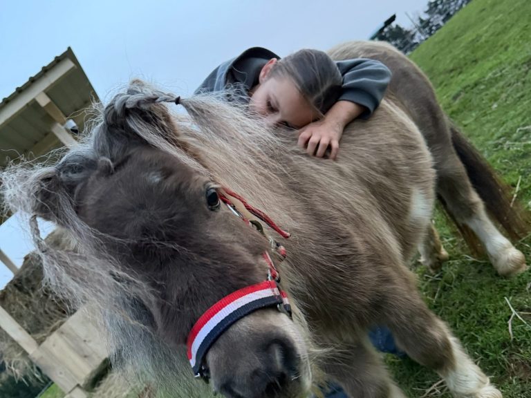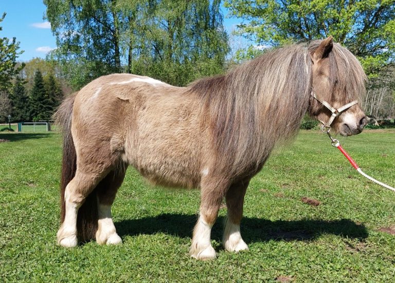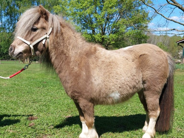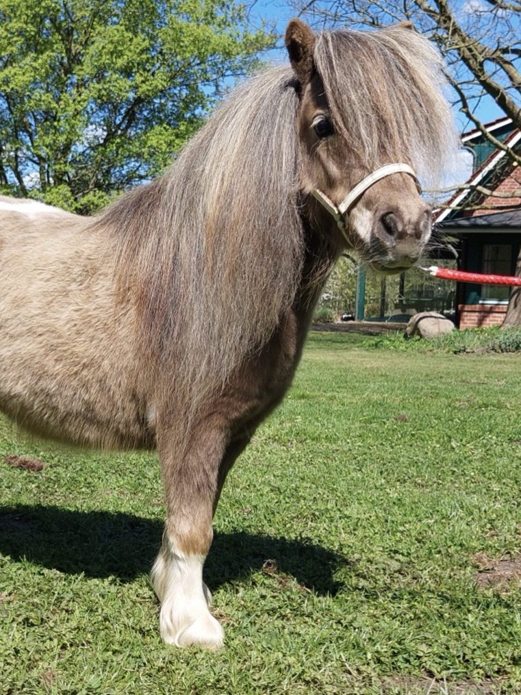 Unsere süsse Nonneke ist eine kleine Mini Shetty Stute in der wunderschönen Farbe Mushroom. Sie hat ein super liebes und anhängliches Wesen.